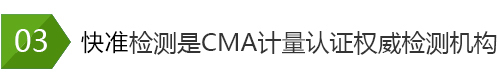 中國計量認證簡稱“CMA”,只有取得CMA認證證書的檢測機構,才能夠 從事檢測檢驗工作,對外出具檢測報告,并允許其在檢驗報告上使用CMA 標記。有CMA標記的檢驗報告可用于環境及產品的質量評價、成果及司法 鑒定